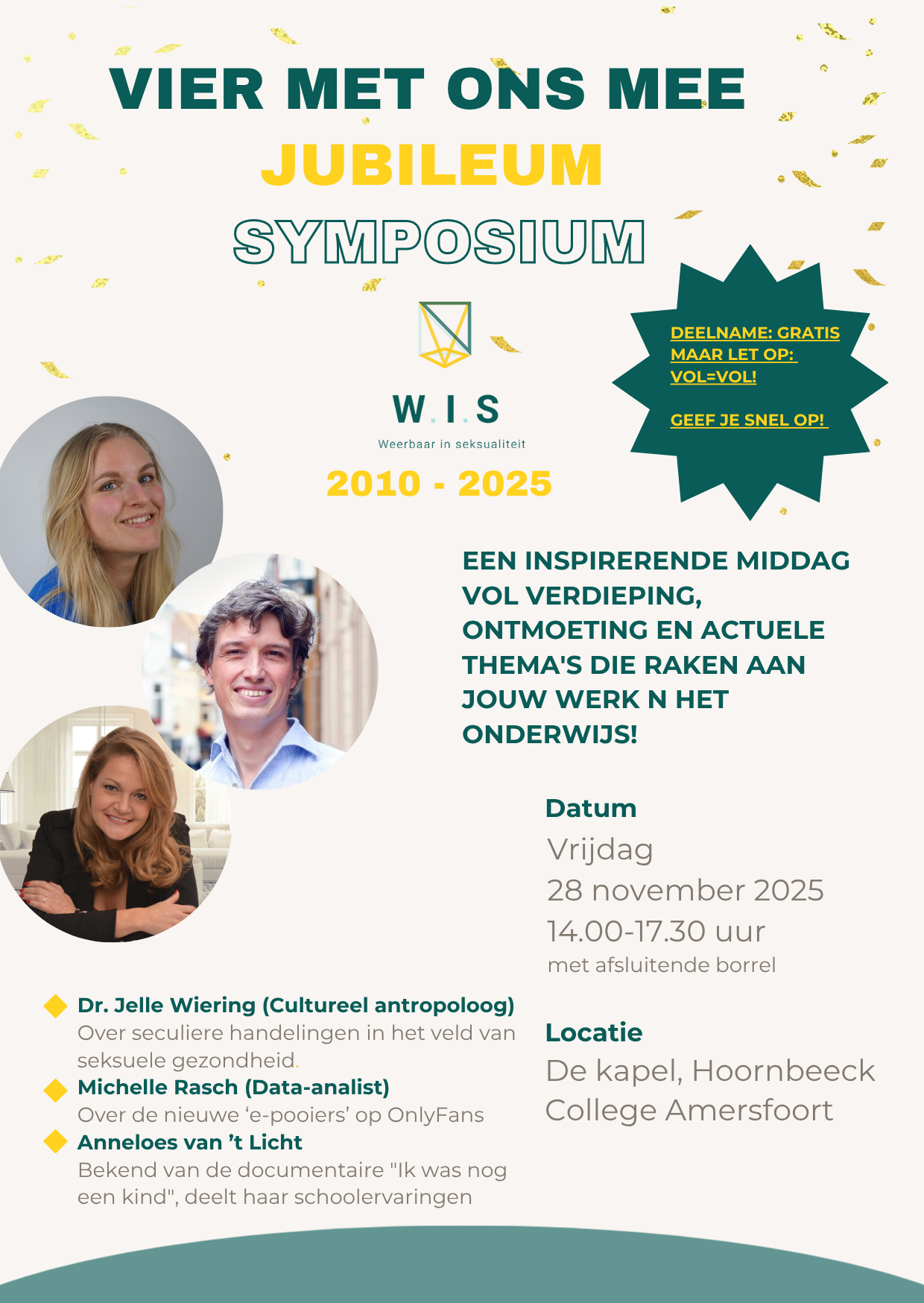 – SAVE THE DATE – Wie jarig is, trakteert! 🎉 Wiseducatie bestaat 15 jaar! 🎉 Vier het met ons mee op vrijdag 28 november in Amersfoort De afgelopen 15 jaar hebben we met ontzettend veel plezier en visie met het onderwijs (VO-VSO-MBO) samengewerkt rondom seksuele vorming. Werk je in het onderwijs? Dan nodigen we je… Lees meer »